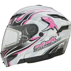 GMax GM54S Limited Edition Modular Street Helmet Get a great helmet, and give to a great cause. This Limited Edition Pink Ribbon Riders Helmet is individually numbered and 5 of each sale is given to the Pink Ribbon Riders to further their support to raise awareness and to find a cureto endbreast cancer. The new modular design of the GMax GM54S helmet allows the "flip-jaw" to rotate further back on the crown of the helmet. The further rotation of the flip-jaw not only increases the users line-of-sight when in the raised position, but it also lessens the users fatigue by maintaining an even distribution of weight across the helmet. New inner flip tint sun lens
