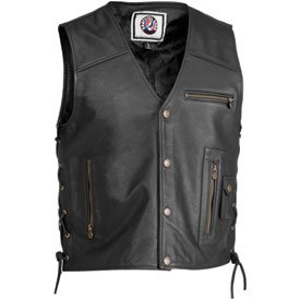 River Road is a top brand name in motorcycle apparel today. Its high quality hand picked leather is designed to last you a long time and still look good after many miles of riding. The Grateful Dead Color Logo Leather Motorcycle Vest has adjustable leather lace on the sides that assure that you will have a great fit that is perfect for you. The Grateful Dead Color Logo Leather Motorcycle Vest has 3 zippered pockets and a change pouch to give you plenty of storage space. You will not go wrong with your choice when you purchase the Color Logo Leather Motorcycle Vest. This premium leather vest is fully-lined for a comfortable fit. Adjustable, full-length, lace-up sides provide a more tailored fit. A built-in kidney panel offers added support. 3 zippered pockets and a change pouch give you plenty of storage space. Includes 2-year manufacturer's warranty. Chest Measurements: Medium - 40" - 42" Chest Large - 44" - 46" Chest X-Large - 48" - 50" Chest XX-Large - 52"- 54" Ches t XXX-Large - 56" - 58" Chest XXXX-Large 60" 62" Chest