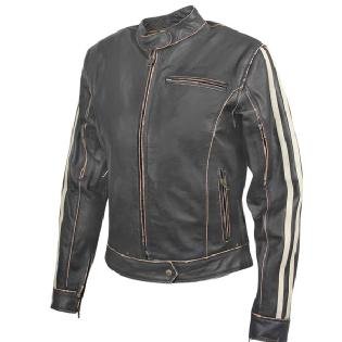Xelement BXU-100530 Women's Dark-Brown Vintage Motorcycle Jacket with Beige Stripes Sz 2XL